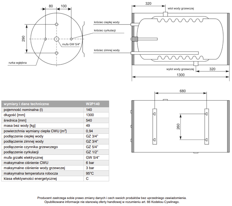 DWUPŁASZCZOWY POZIOMY ZABIORNIK CIEPŁEJ WODY DO WSPÓŁPRACY ZE WSZYSTKIMI RODZAJAMI KOTŁÓW C.O.