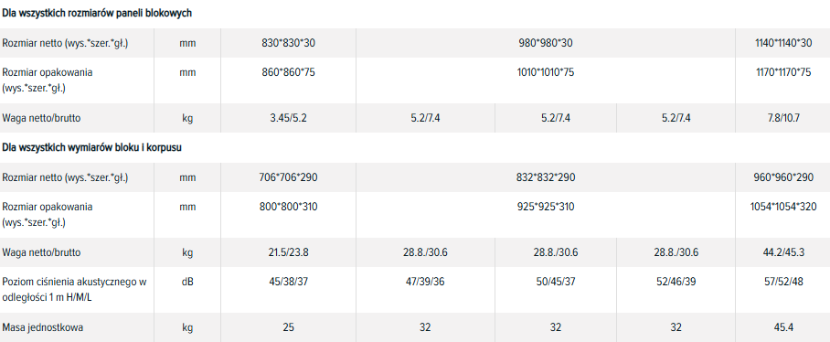 (potrzebną wydajność i model urządzenia należy wybrać z tabeli w opisie poniżej)