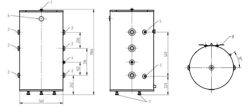 ZBIORNIK BUFOROWY DO POMP CIEPŁA WYMIARY I DANE TECHNICZNE: